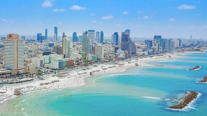 Israel tem uma grande variedade de praias para escolher. A grande extensão do Mediterrâneo ao longo do lado oeste do país possui largas faixas de areias douradas e maravilhosas ondas azuis.